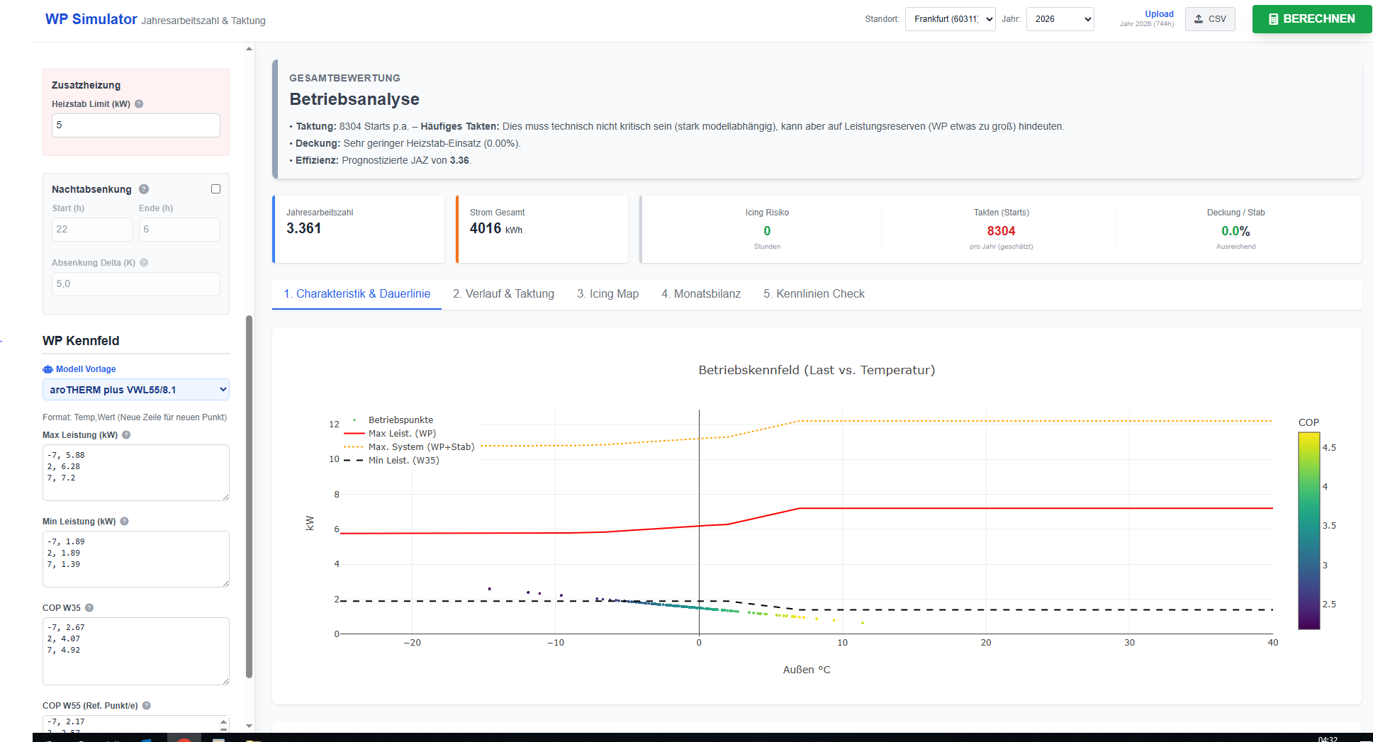 Die WP moduliert doch bis auf 410w runter oder verstehe ich das falsch? weil im tool sind unter min Leistung 1,89KW hinterlegt.