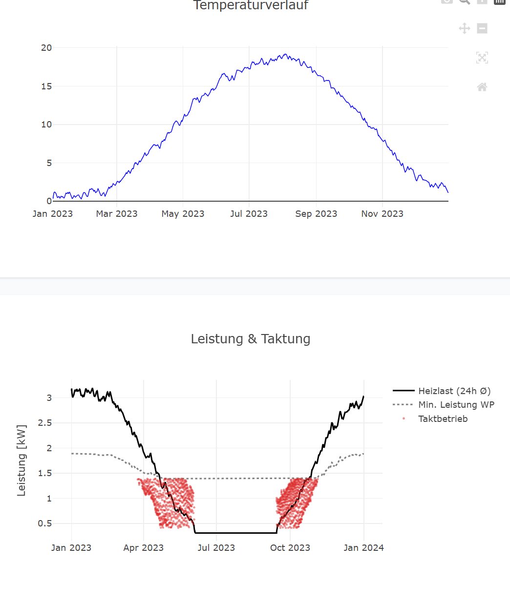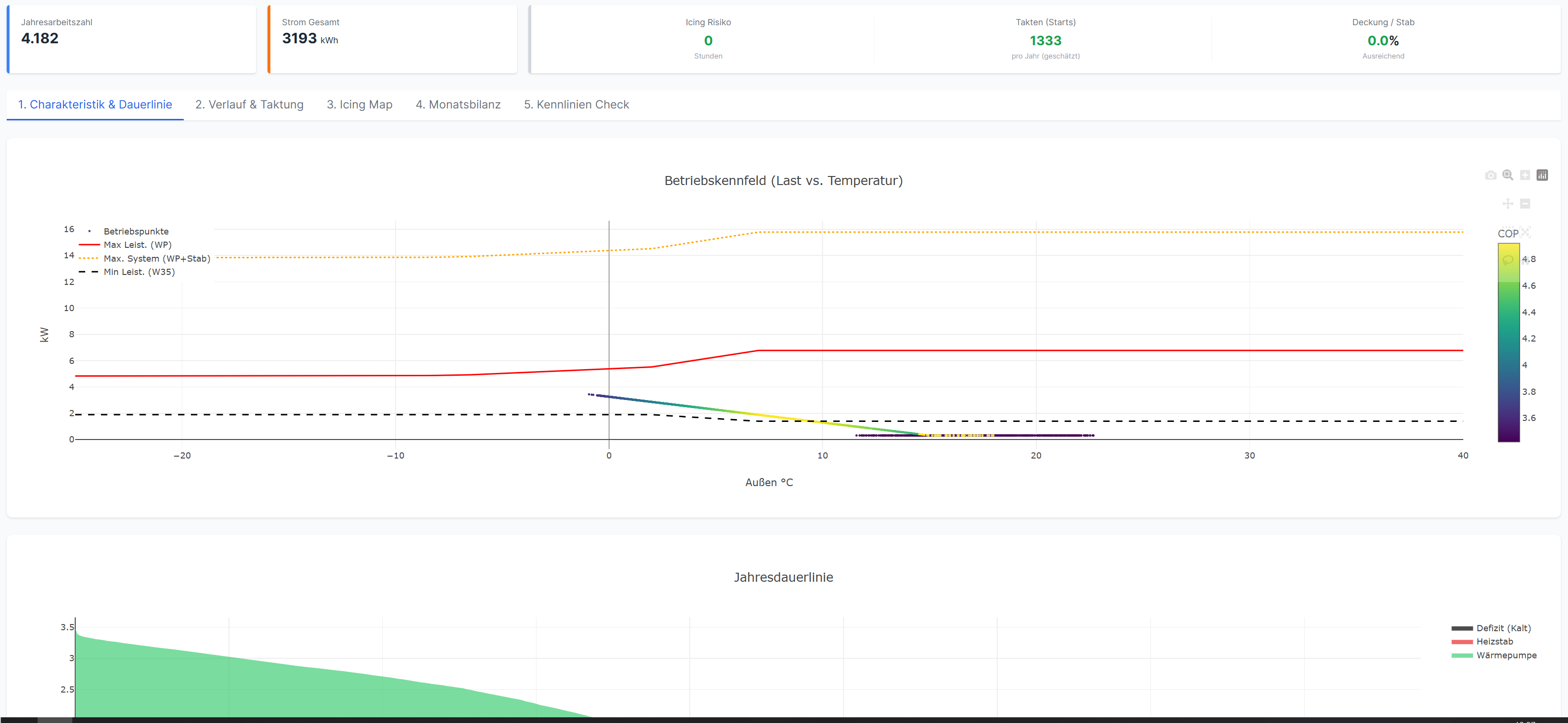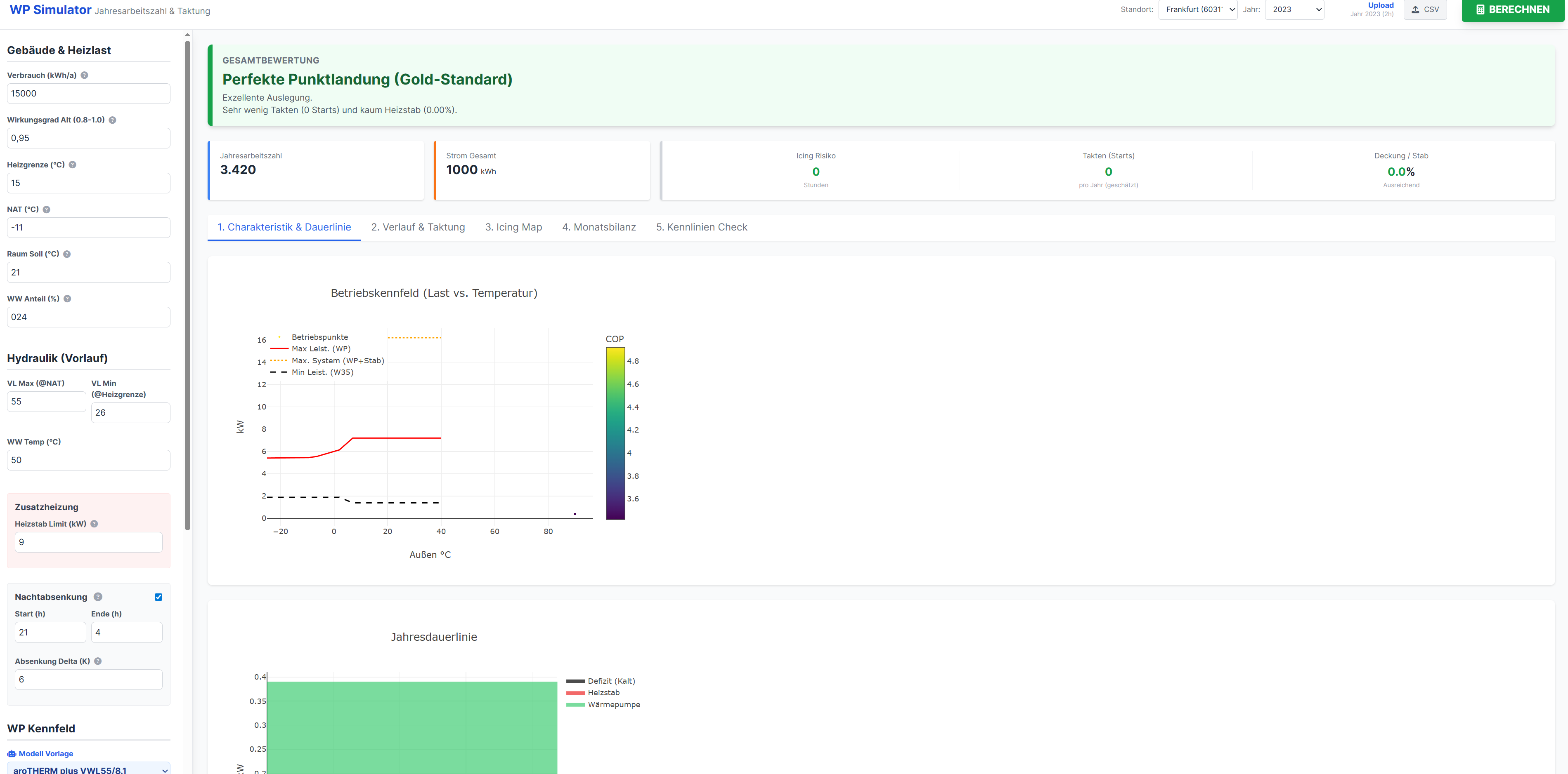 Ich bin etwas verwirrt. In meinem Diagramm komme ich auf eine 24h heizlast von gerade mal 3kw? Kann das überhaupt hinkommen? Nicht mal der heizstab soll benötigt werden