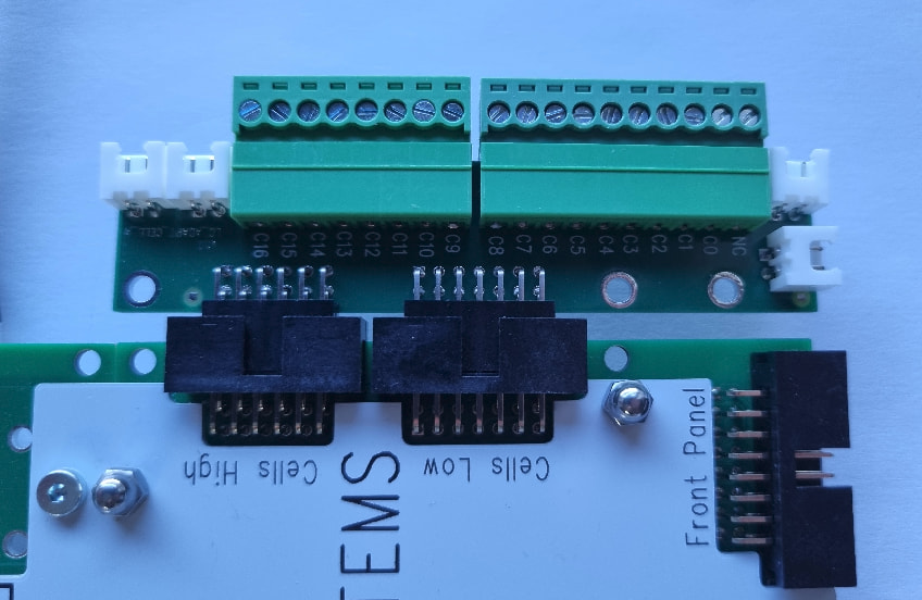 Die neuere HW-Generation ist mit den zwei 2.54 mm Stiftleistung, auf die die 17 Zellmessleitungen und 4 Zelltemperaturmesskanäle verteilt sind, auf ein bestimmtes Packdesign optimiert und dürfte für die meisten so nur unbequem nutzbar sein. Um nicht schon wieder eine zusätzliche Version ableiten zu müssen, habe ich kürzlich eine Adapter-Platine ergänzt, die das auf vier 2-polige XH-Stecker ( die oft für 10k NTC verwendet werden ) und zwei 8 bzw. 10-polige steckbare Klemmleisten umsetzt.