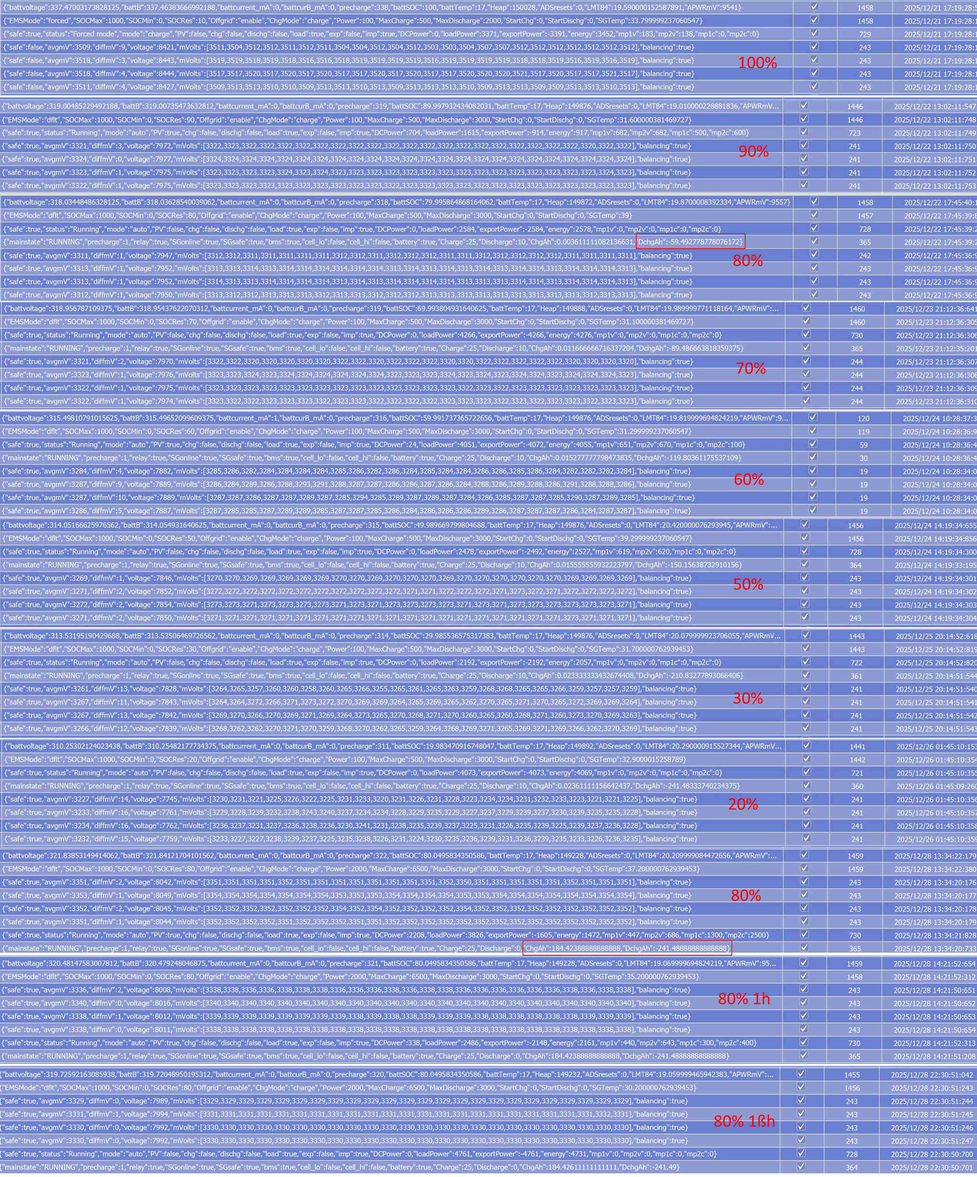 Und zwar JK-BMSs für Balancing und Spannungsmessung und ein Board mit ESP32 zur Überwachung und Kommunikation (CAN,Modbus). Die Batterie läuft nun seit rund 10 Tagen und hat noch nicht einmal ein Top-Balancing hinter sich