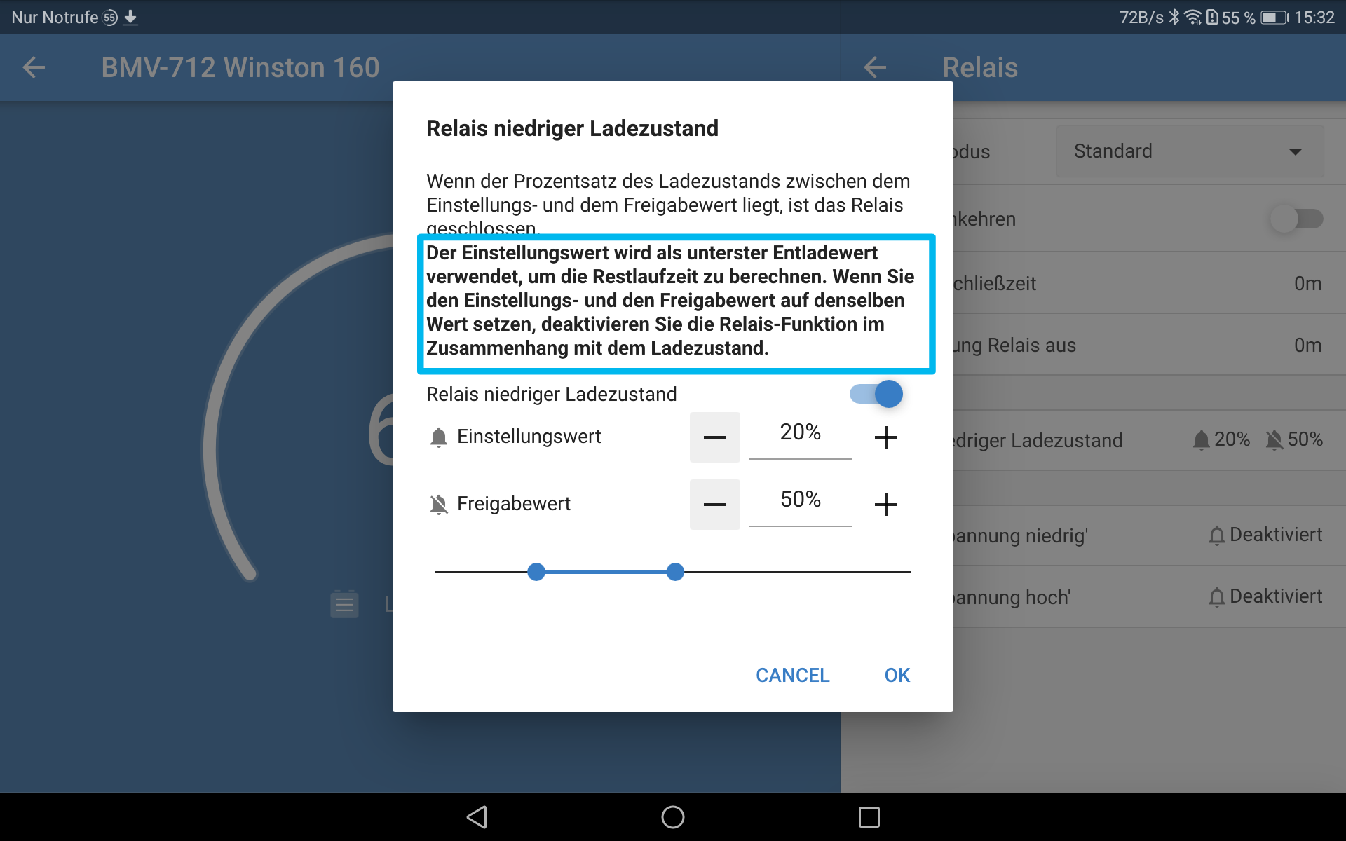 Laut Anleitung ist der Wert für den "Entladeboden" nur dafür da, die Restzeit zu berechnen, aber es ist doch etwas komplizierter.