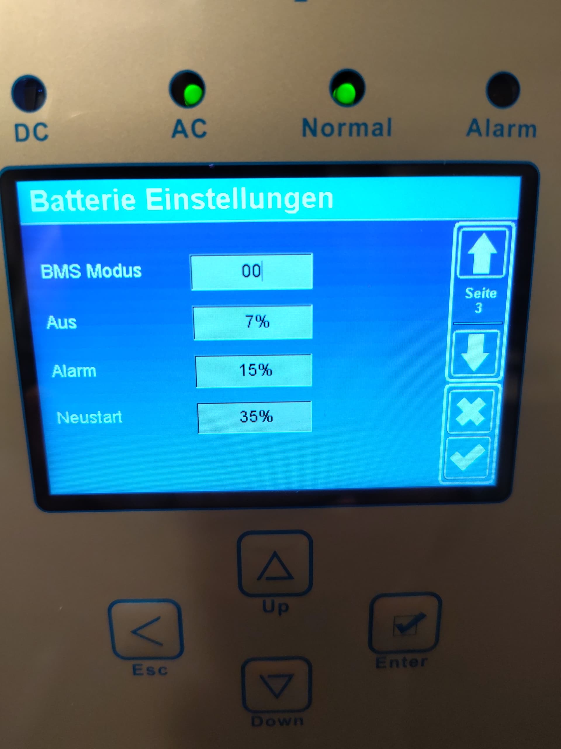 Hab jetzt temporär erstmal in „Battery Setting“ „use batt V“ eingestellt, damit der Akku überhaupt geladen wird.