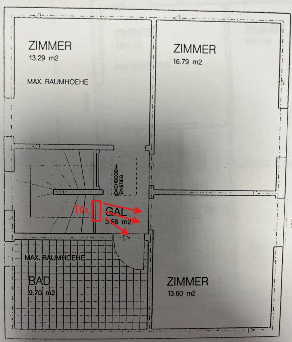 Es ist also extrem, wieviel Luft hier durch die Tür nach oben strömt. Man spürt es auch sehr deutlich. Ich denke mir, wenn die warme Luft nun von der Aussenwand WZ, durch die offene Tür, durch das Stiegenhaus, bis ins OG zu den Aussenwänden vordringt, sollte es kein Problem sein wenn oben auch eine Anlage ist, dass diese ihre Leistung in die beiden Räume bringt?