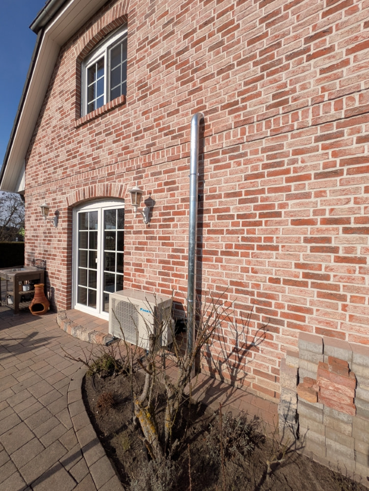 Sieht gut aus, ich kann auch das 100er Fallrohr empfehlen, passt für ne Multisplit mit max. 2 Innengeräten. Ich habe es auf den Boden gestellt, dann schaut es noch etwas eleganter aus.