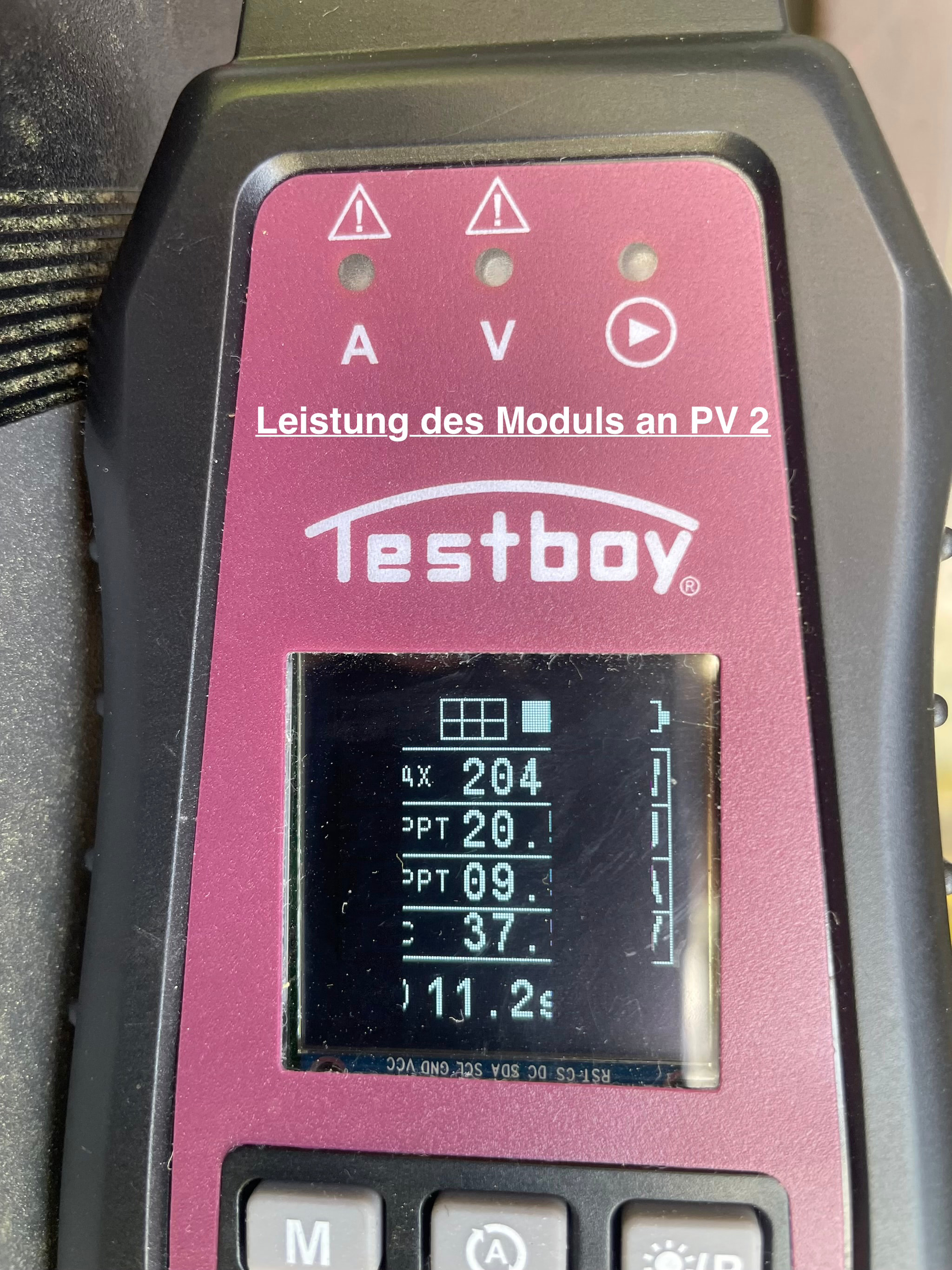 Dazu kommt jetzt auch noch die Messung des MPP mit dem Testboy, wo ganz offensichtlich was nicht stimmt.