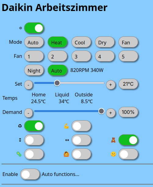 Über Faikout hat man ein lokales Web-Interface, kann über MQTT steuern und in HomeAssistant, FHEM und ähnliche Automatisierungslösungen die Daikin-Anlagen einbinden.