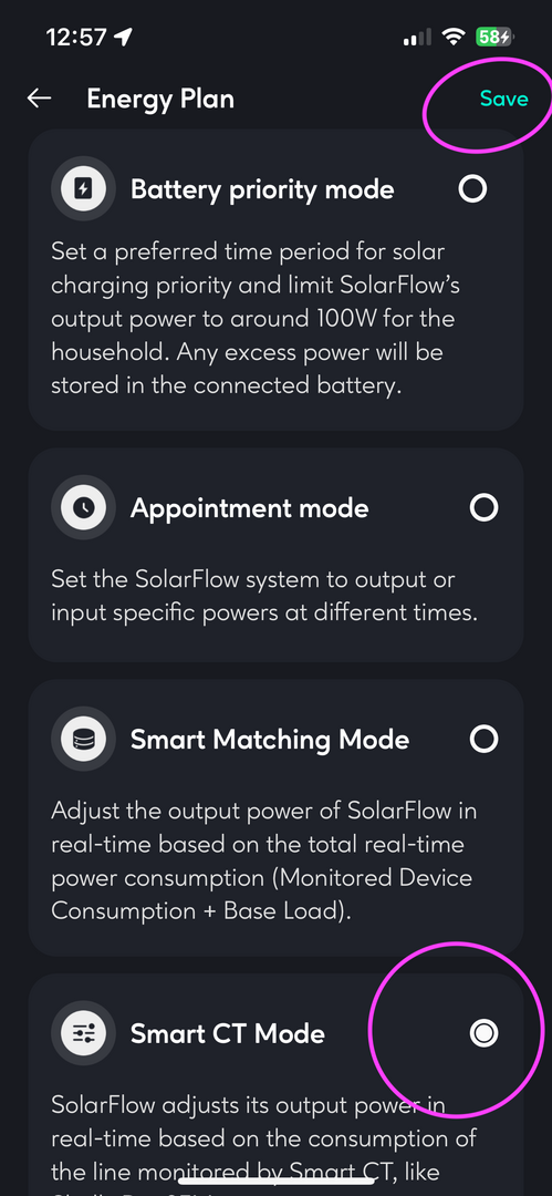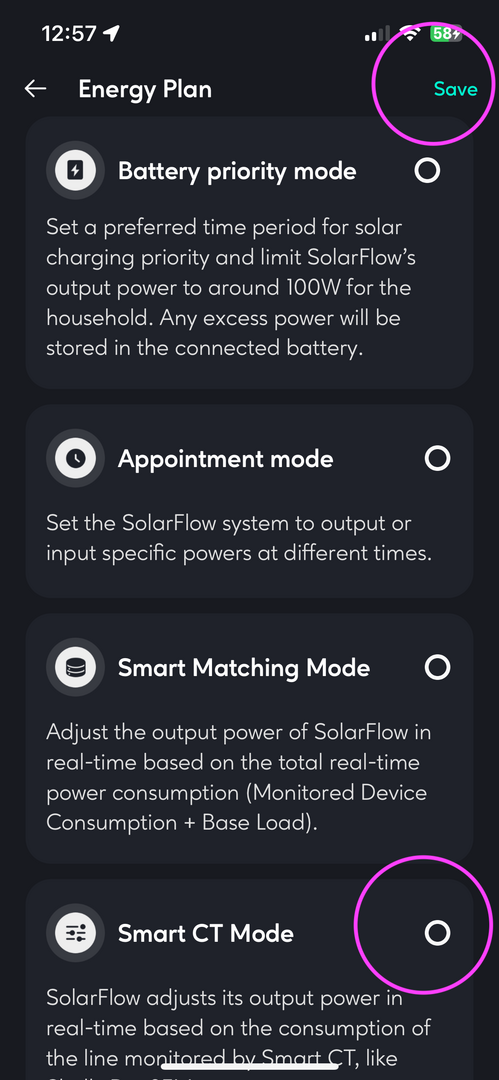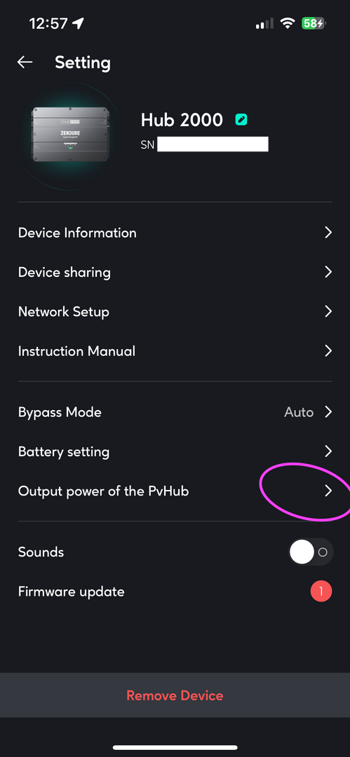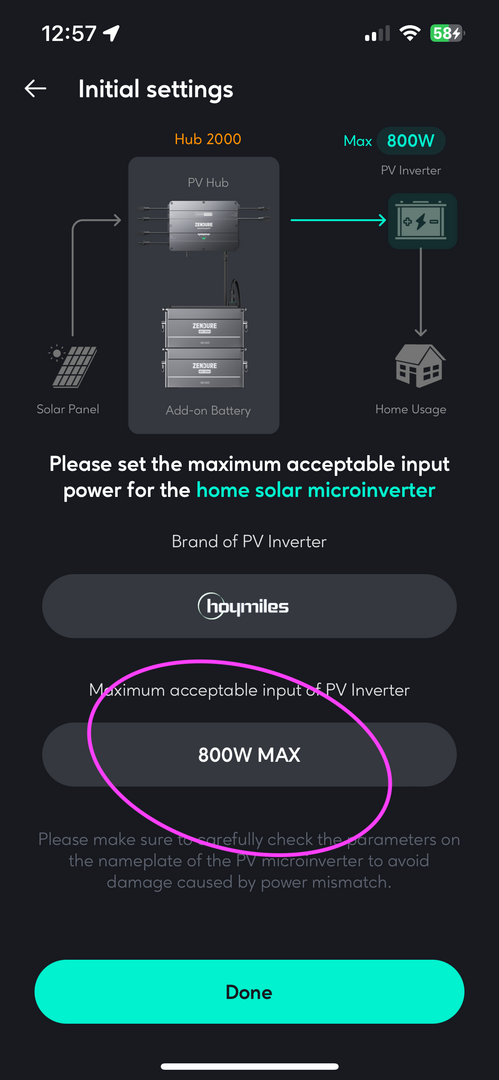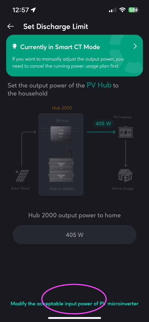 Hierbei habe ich versucht, dem Hub vorzugaukeln, dass ein viel höherer Bedarf im Haus ist, als meine 40W und habe mit verschiedenen Werten herumgespielt. Gewählt habe ich eine Leistung, bei der in der Zendure App eine Solarleistung von etwa 50W oder mehr angezeigt wurde, das bedeutet konkret ein Limit (pro Hub; siehe Setup, siehe 1. oben) von mindestens 100W, eher mehr, also WR Limit min. 200W.
