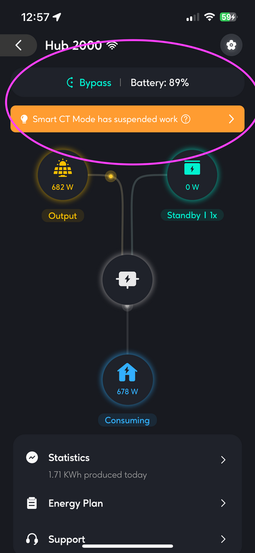Im Bypassmodus ist die in der Zendure-App (bzw. im MQTT) angezeigte (möglicherweise auch gemessene??) Solarleistung teilweise deutlich niedriger als das was beim Wechselrichter ankommt / gemessen wird.