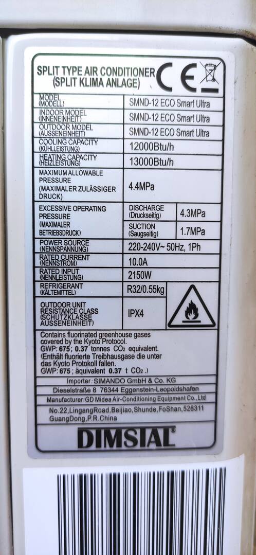 @mitsch06 Bei meiner 12.000er Dimstal stehen 10 Ampere bzw. 2150 Watt Nennstrom auf dem Aufkleber vom Außengerät. Ich denke aber, dass das eher für eine sichere Elektroplanung gedacht ist (passende Querschnitte und Sicherungen) und man nicht damit rechnen muss, dass sie tatsächlich soviel Leistung für einen längeren Zeitraum abrufen möchte.