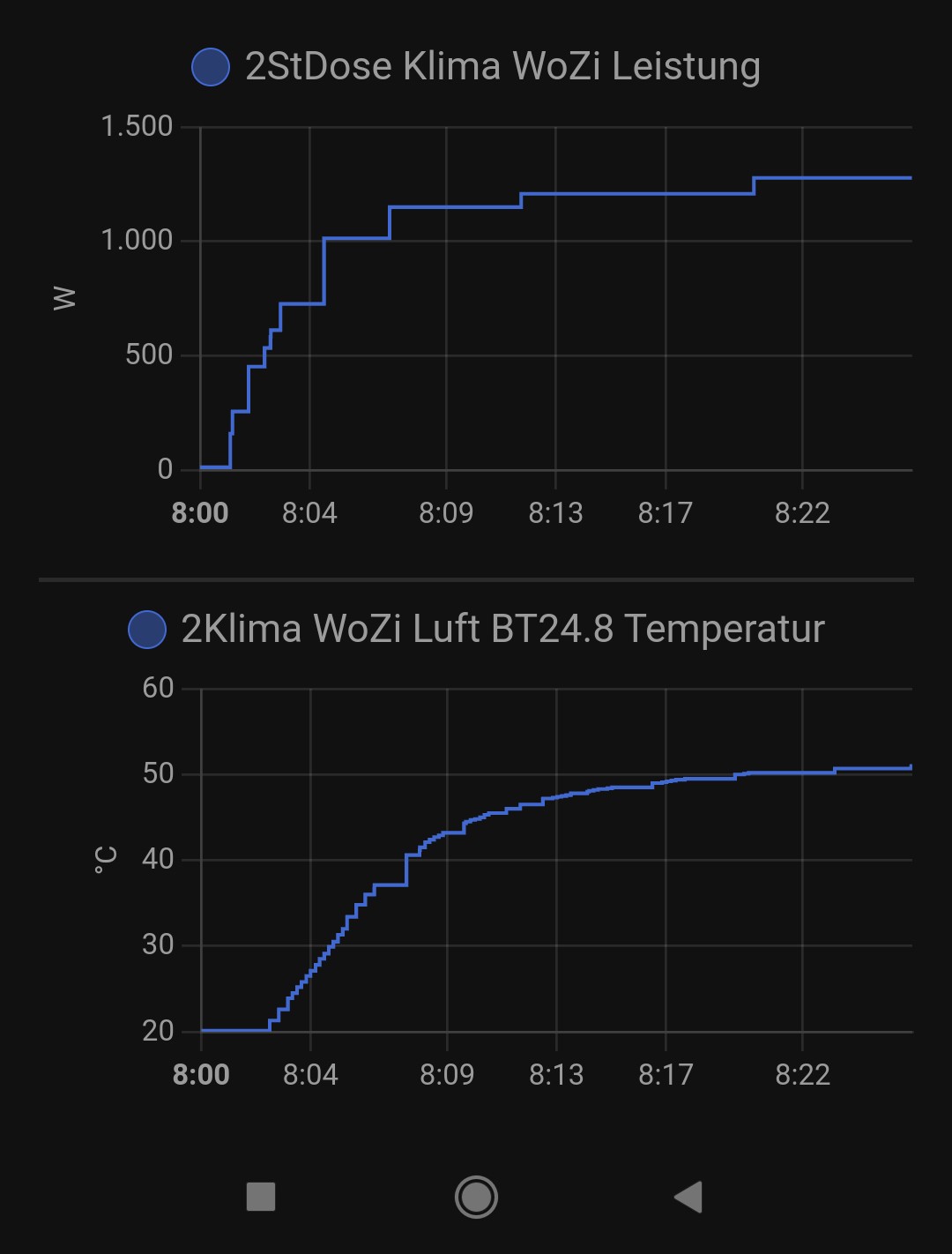 Da fehlt noch die Lüfterstufe, um überhaupt vergleichen zu können. Und es interessiert nicht die Raumtemperatur, sondern die Ansaugtemperatur. Hier aufpassen, dass ein Sensor dort nicht über dem Wärmetauscher angebracht wird, sondern auf der rechten Seite, wo die Elektronik sitzt. Schau dir mal die Infos hier genauer an, wie man so ein Mess-Szenario aufbauen muss.