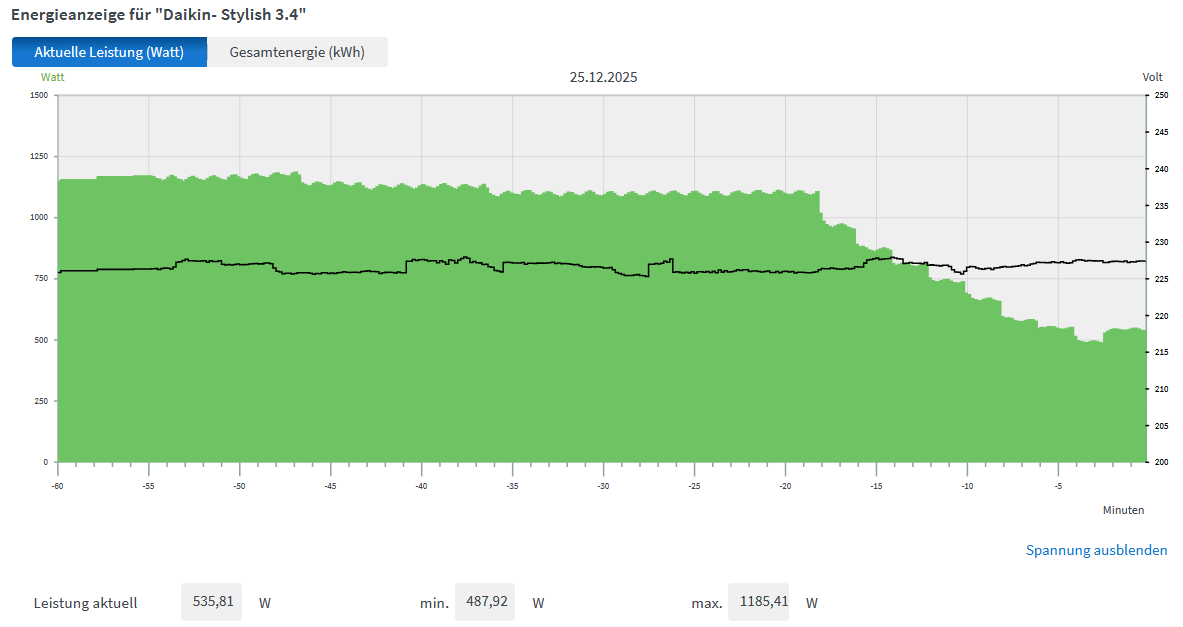 Daikin taktet weiterhin nicht grundlos .. nur der Abtau zyklus war zu erkennen .